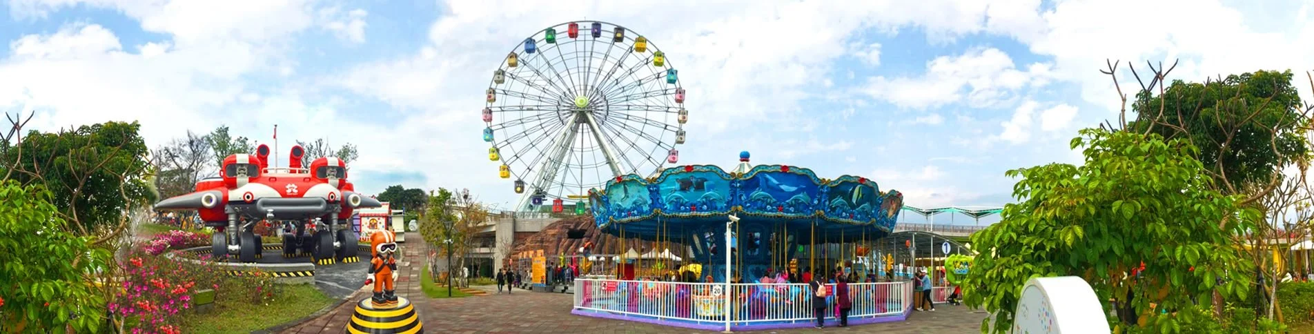 The amusement park is a family theme park in the Taipei metropolitan area, with 13 rides, including the brand new Ferris Wheel, Bumper Cars, Ocean Carousel (musical carriage), Dancing Fly (dragon boat), Wave Swinger, Monorail and Spinning Tea Cups, Roller Coaster, Crazy Bus, Drop Tower, Pirate Ship, Telecombat and Spinning Chairs.